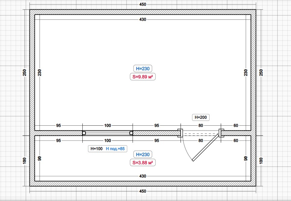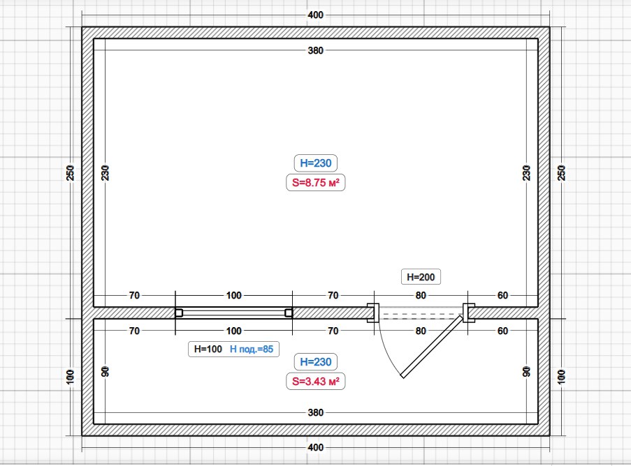 комната 1 - 2.1м х 3.84м