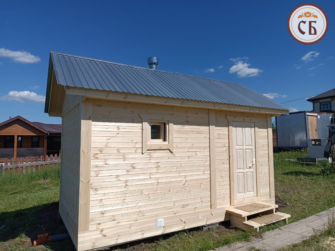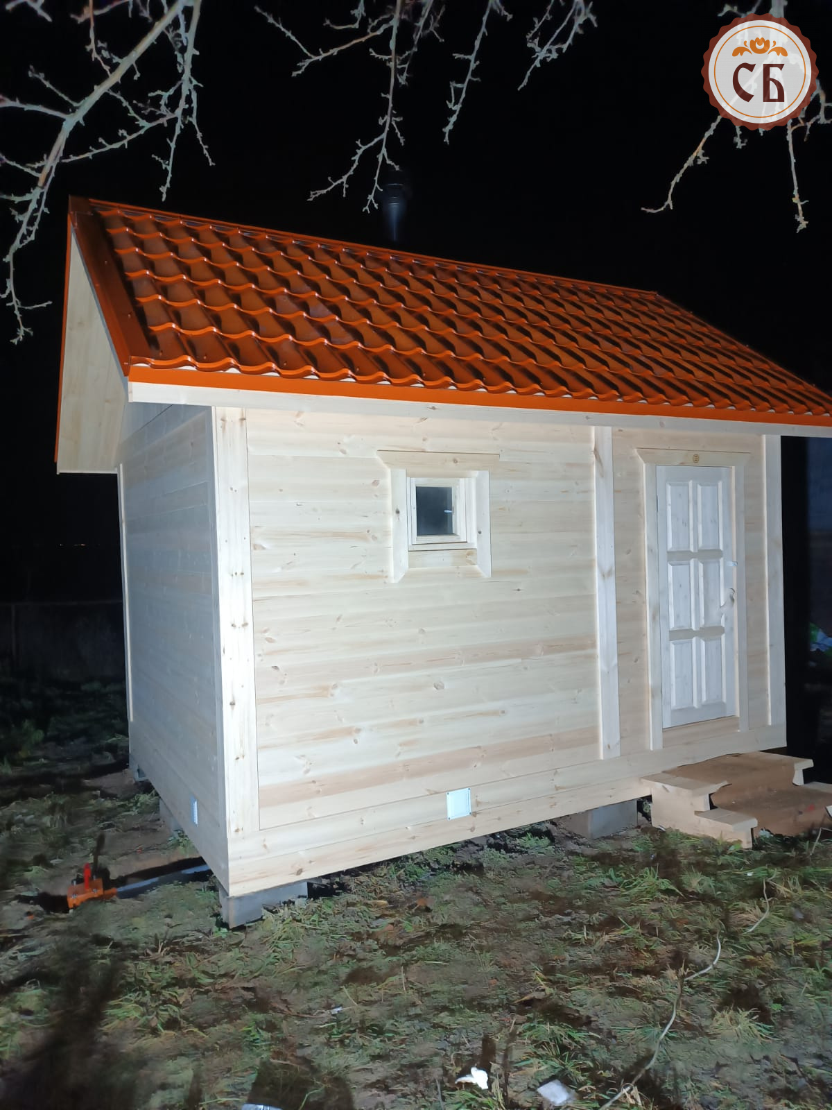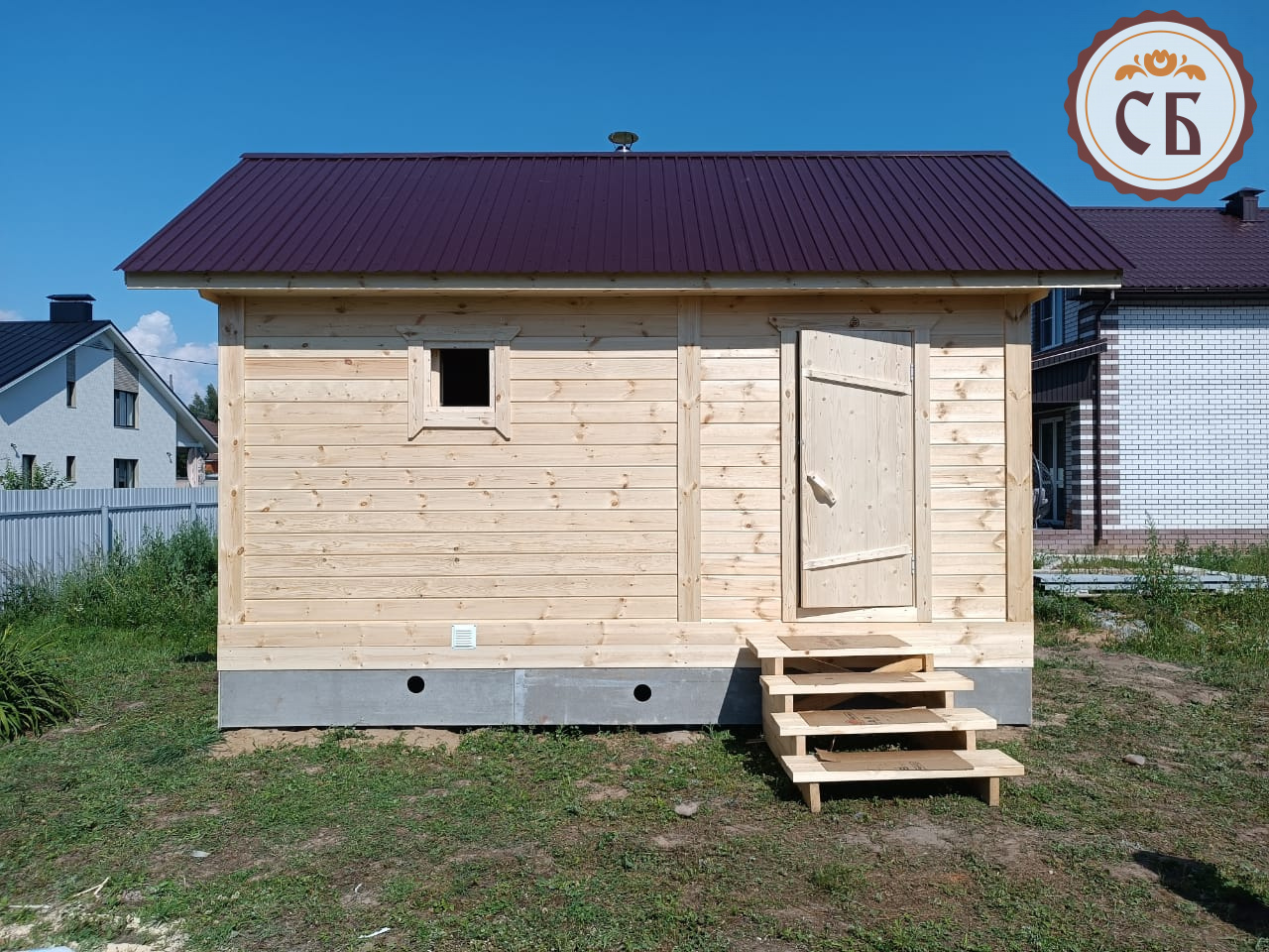 Размер бани 1.75х2.43 м. размер предбанника 1.75х1.68 м. размер беседки 2х4.5 м.( размер беседки можно сделать по Вашему желанию)