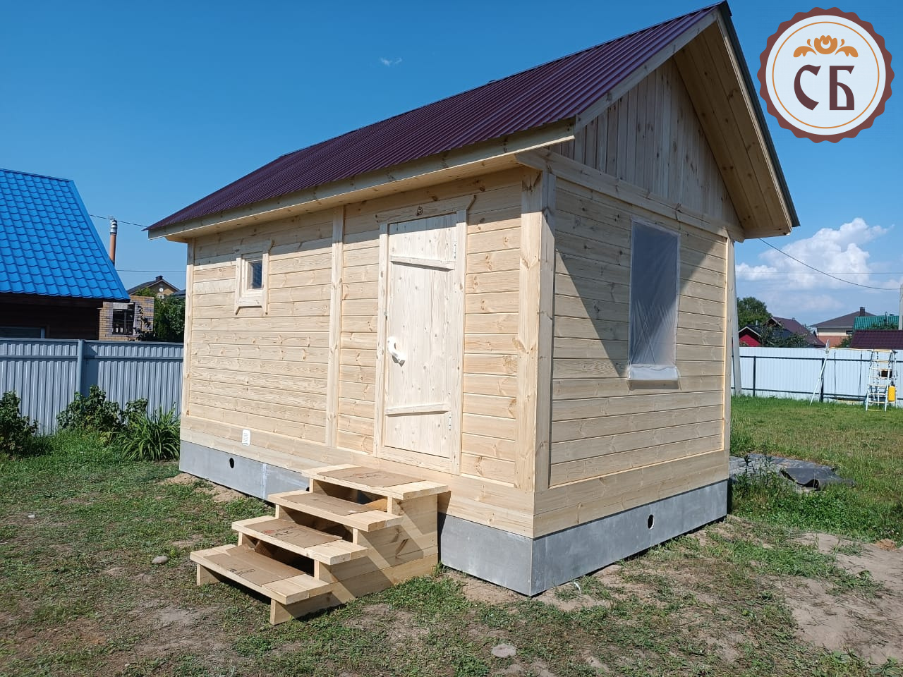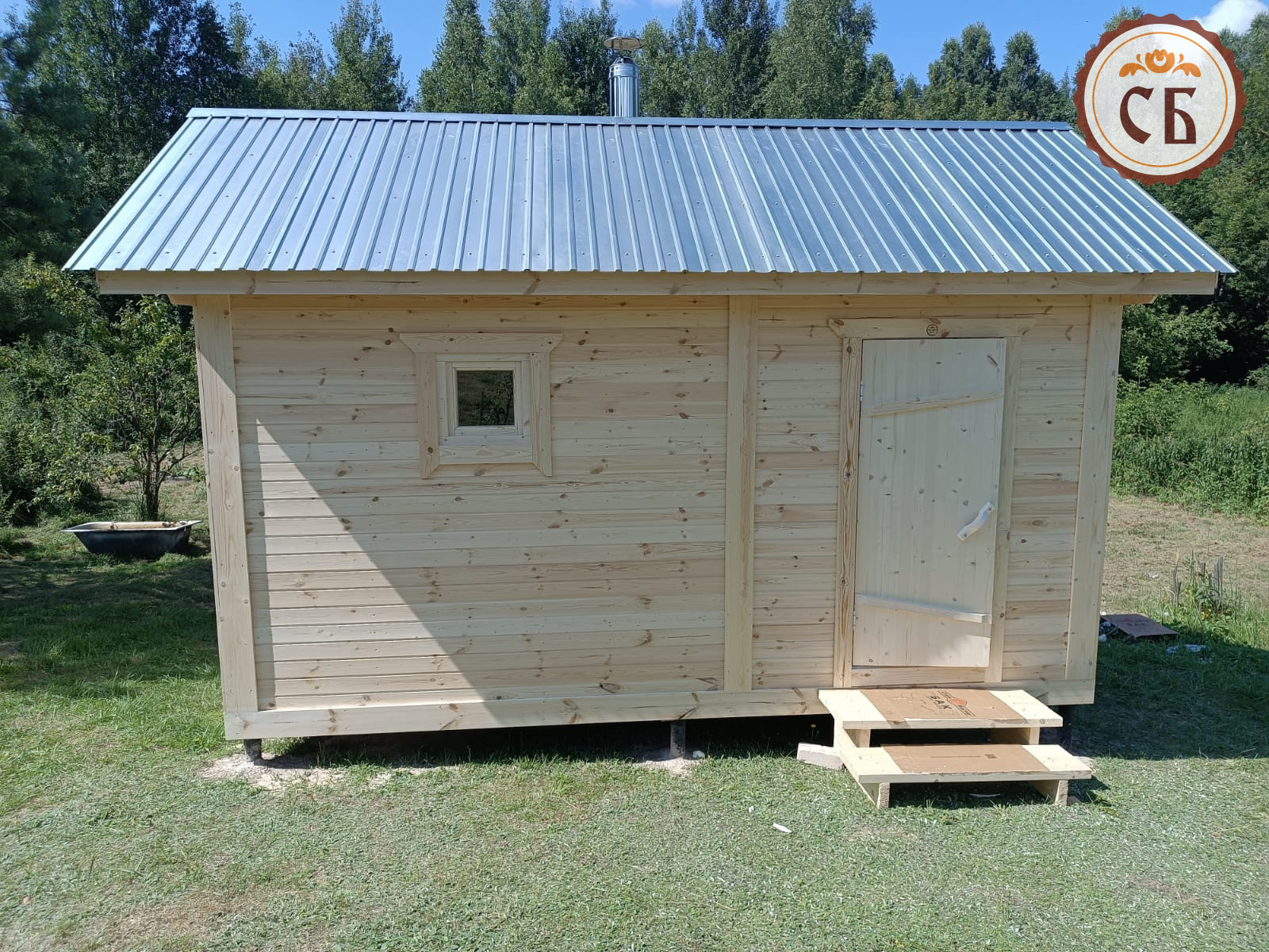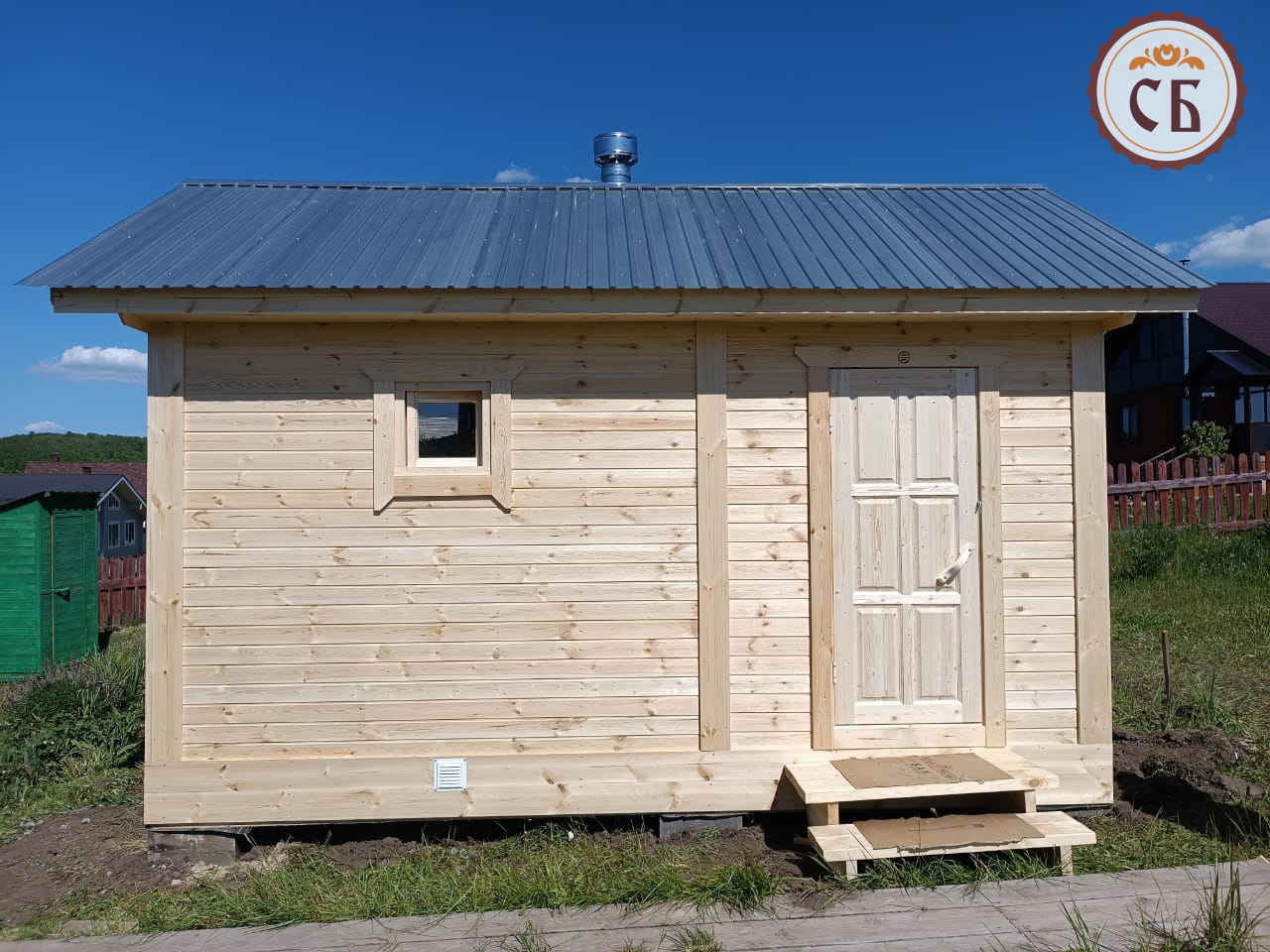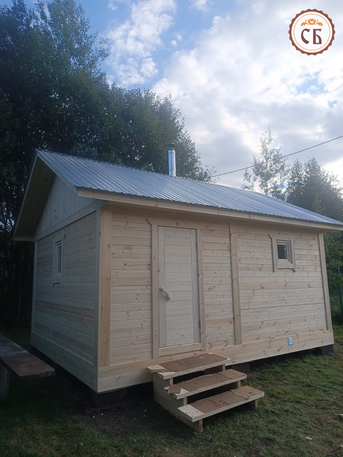 Размер бани 1.75х2.43 м. размер предбанника 1.75х1.68 м. размер беседки 2х4.5 м.( размер беседки можно сделать по Вашему желанию)