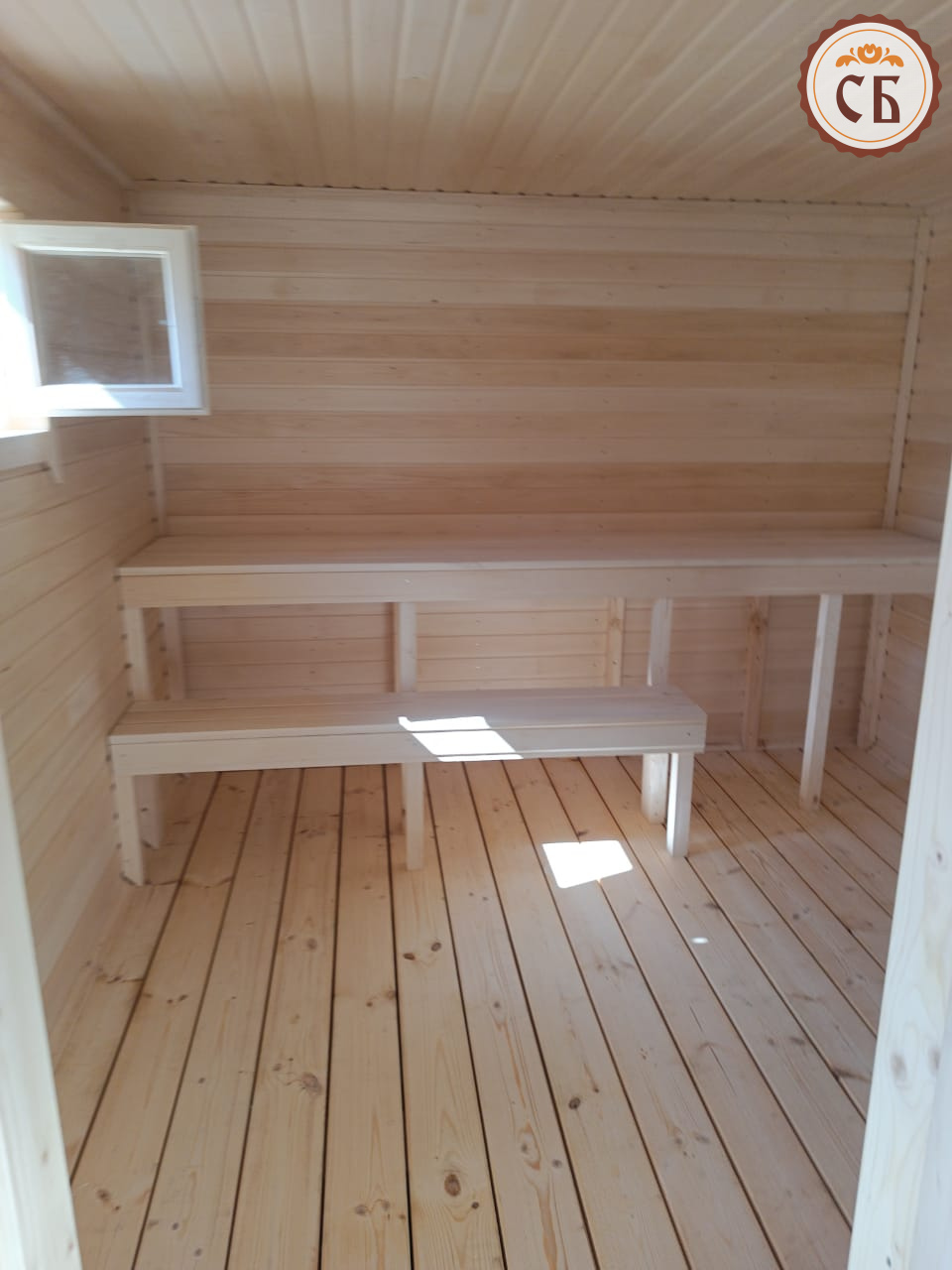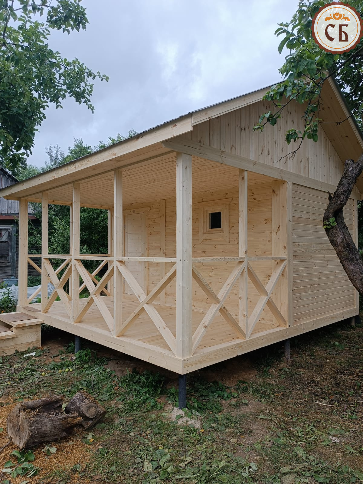 Размер бани 2.23х2.43 м. размер предбанника 2.23х2.18 м. размер беседки 1.5х5 м.( размер беседки можно сделать по Вашему желанию)